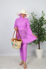 - Burkini mauve en 3 pièces (Robe, Pantalon et bonnet)